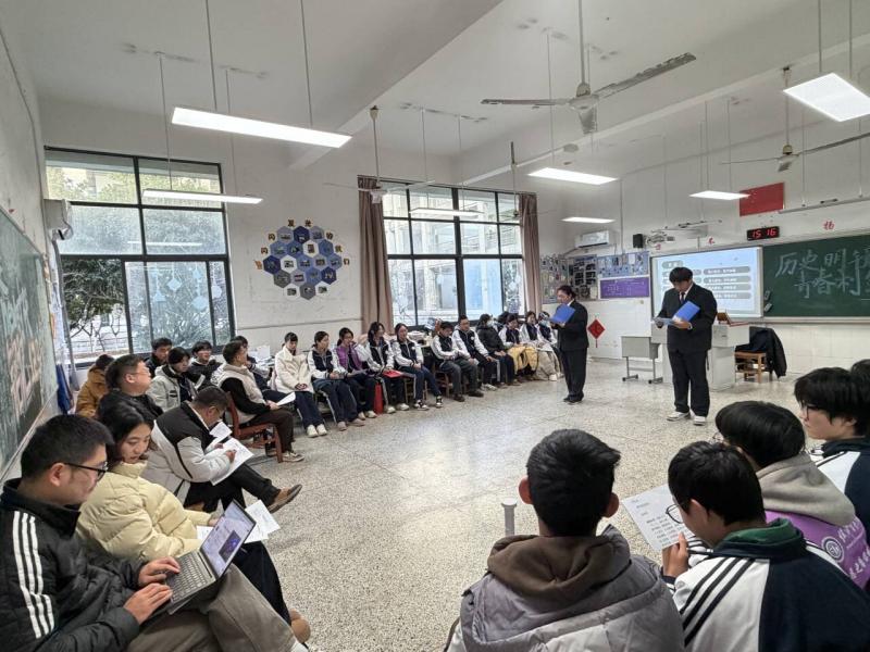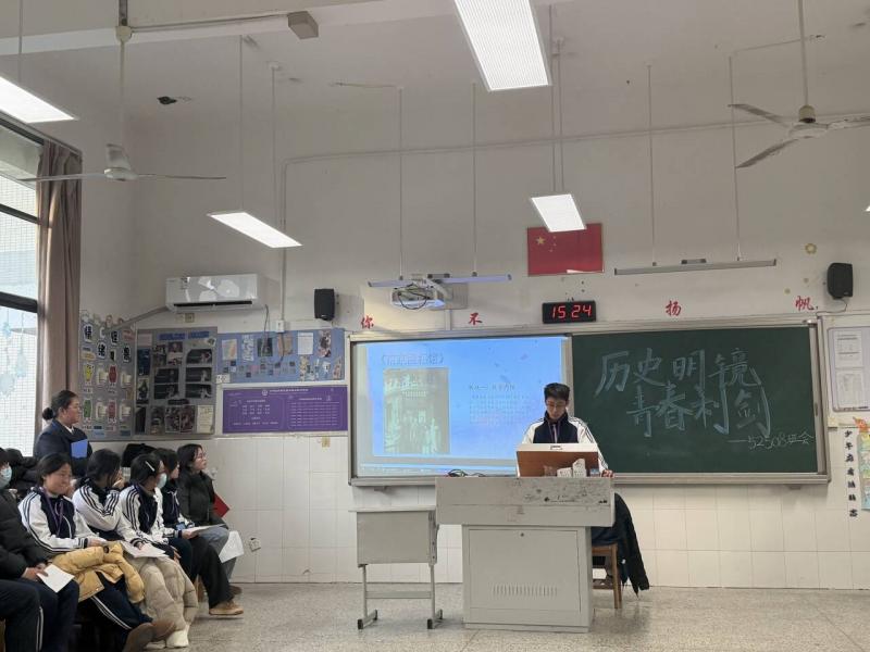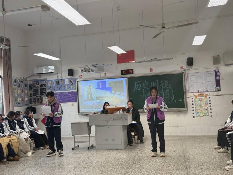 2025年12月16日下午第七节课,经济贸易学院52508班以“历史明镜,青春利剑”为主题,在班级教室开展了一堂校级主题班会公开课。班主任王雨喃带领全班学生,通过沉浸式体验与互动交流,重温民族苦难历史,传承和平使命,凝聚青春奋进力量。经贸学院的学工人员和学校几位班主任老师现场参与听课。