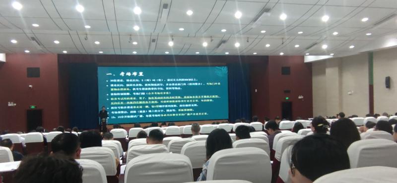 作为承载此次重大考试任务的考点,我校积极响应、精心筹备。4月19日下午,教务处组织全体考务人员在季子厅召开考前培训会,教务处蒋国强副处长带领大家认真学习考务守则、部署考点布置、试卷及答题卡发放和回收、验收等考务工作。刘振华处长对所有监考老师明确要求,他强调职教高考与普通高考具有同等重要地位,希望所有监考老师高度重视,认真学习考试流程,严肃考试纪律,确保考试安全有序进行,做到万无一失。