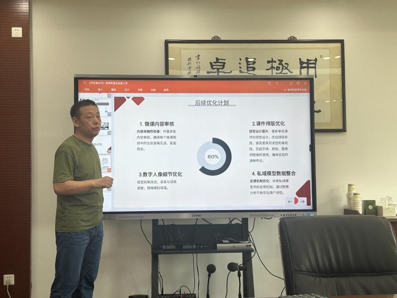 首先,各项目负责人从建设目标、工作进度、建设成果、实践运用情况和下一步建设计划等方面对教学资源库建设总体情况进行了汇报。经济贸易学院郭尧副院长介绍了现代物流管理专业资源库的建设情况,分享了《物流设备管理与维护》、《数字化供应链运营》、《智慧物流与供应链基础》三门专业核心课的建设成果。酒店烹饪学院王东老师和韦舟平老师分别就烹饪工艺与营养专业《烹饪基本功》和《江苏名菜》两门课程的工作完成情况进行汇报,并对后续优化的几个方面进行了思考:如微课内容审核、课件排版优化、数字人像细节优化、私域模型数据整合等。随后,与会人员就建设过程中存在的问题进行了交流和讨论。