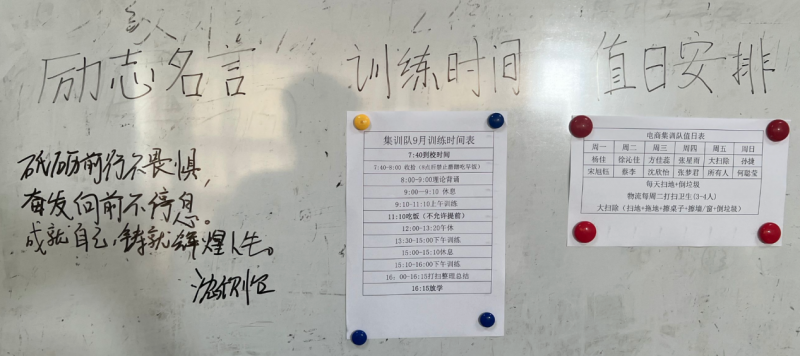 随着一系列节日海报的成功创作和日常训练的刻苦努力,队员们对于即将到来的比赛充满了信心。大家纷纷写下励志名言,为自己和伙伴加油助威并且制定了详细的备赛计划,明确了目标,在教练的指导下,开始了有针对性的训练。队员们表示,他们将继续保持这种精神,全力以赴备战,争取在比赛中取得优异的成绩。