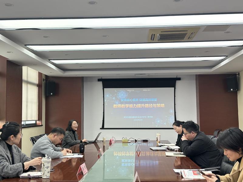 为进一步提升教师教学能力,助力学校教学团队备战2025年教学大赛,2月27日下午,教务处在季子楼312会议室组织召开2025年教学大赛研讨会。会议特邀常州刘国钧高等职业技术学校信息技术处处长黄秀娟副教授作专题讲座,为我校六支参赛队伍带来题为《聚焦核心素养,赋能高效课堂——教师教学能力提升路径与策略》的深度分享,旨在以赛促教、以赛提质,推动课堂教学改革与创新。学校教务处殷莉处长、刘世明副处长以及全体参赛教师出席了本次研讨会,会议由殷莉处长主持。