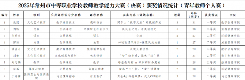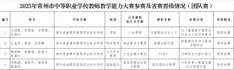 在2025年常州市中等职业技术学校教师教学能力大赛决赛中,我校教师团队凭借出色的表现取得优异成绩,充分展现了新时代中职教师的专业素养与育人风采。