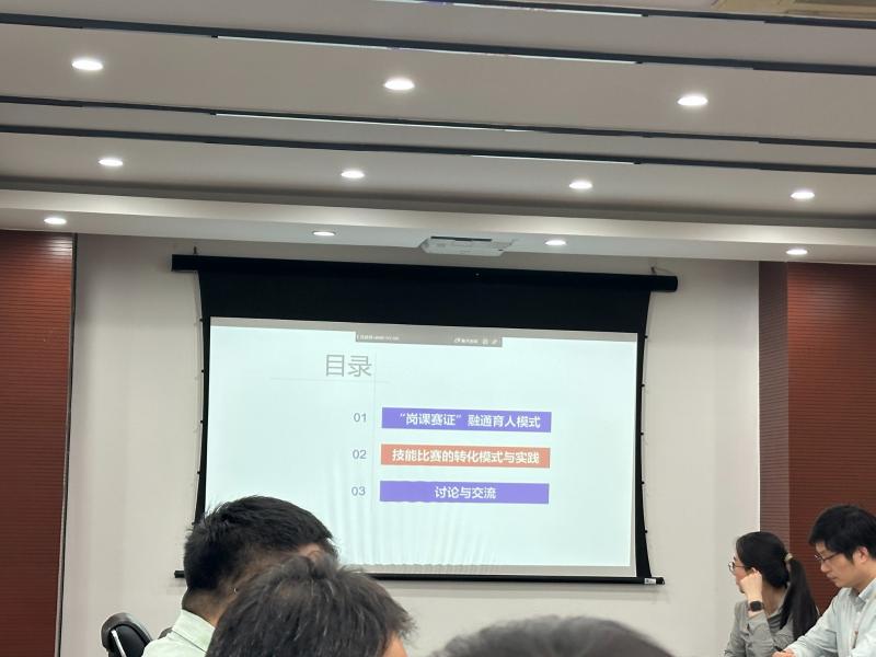会上,专家以《“岗课赛证”融通下的技能大赛成果转化思考与实践》为题,系统剖析了职业教育育人模式创新方向。通过分析“岗位需求、课程体系、竞赛标准、证书考核”四维联动机制,专家指出,技能大赛成果转化需以真实岗位能力为导向,将竞赛项目拆解为教学模块,融入课程标准,推动“赛教互哺”。结合典型案例,专家从资源开发、课程重构、评价改革等方面分享了转化模式,为团队研究提供了可操作的实践框架。