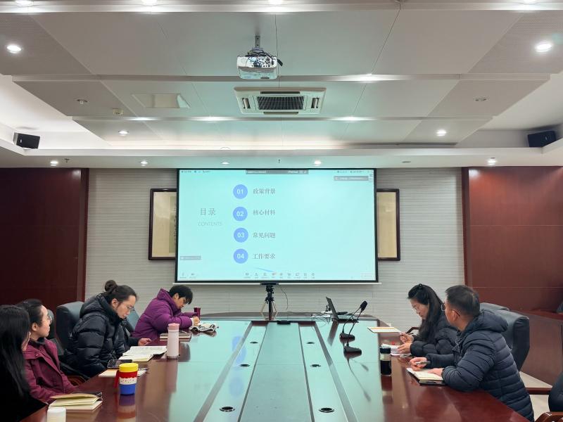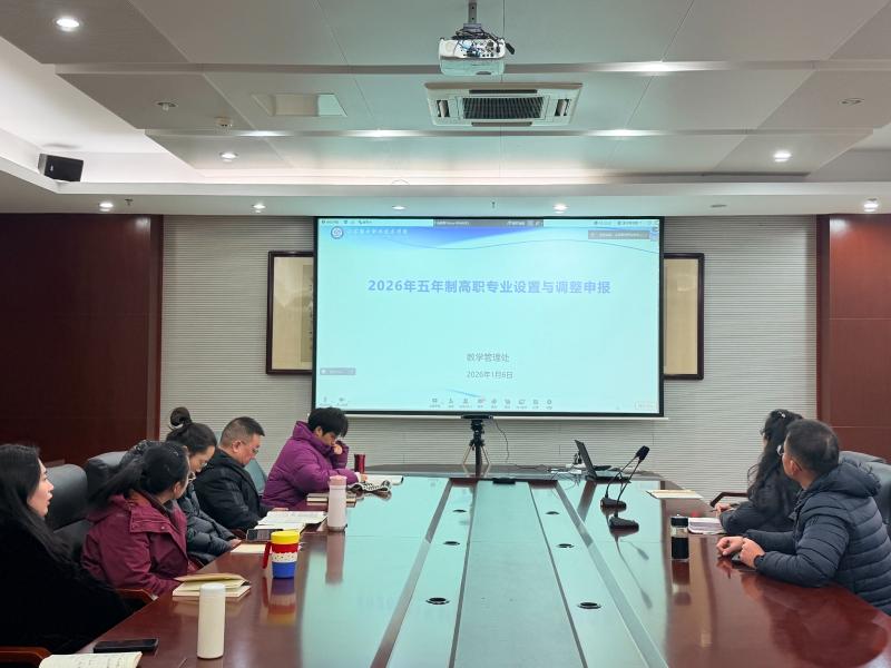 为有序推进2026年五年制高职专业设置与调整申报工作,1月6日下午14:30,教务处在云崧楼106会议室组织外国语学院、运动健康学院相关教师,集中参加江苏联合职业技术学院举办的2026年五年制高职专业设置与调整申报工作线上培训会。教务处殷莉处长、刘世明副处长,外国语学院薛骁院长、周杨副院长,运动健康学院蒋聪副院长,以及相关教学管理人员与骨干教师参加学习。
