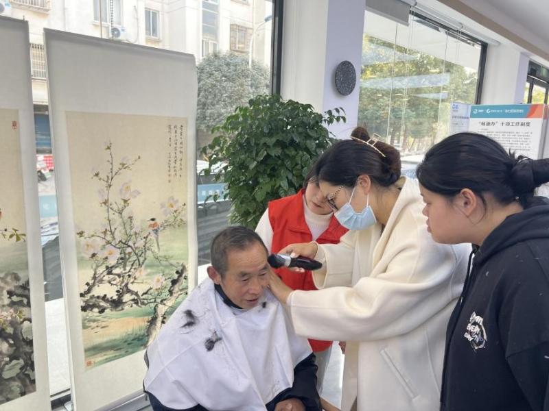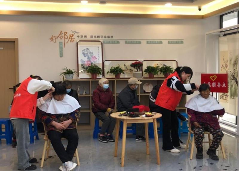 现场,孟主任和社区网格员们对志愿者团队的到来表示热烈欢迎和衷心感谢,并向团队简要介绍了社区的基本情况。紧接着志愿者团队成员做好准备工作,将工具摆放整齐就开始为在一旁等候的老人理发。