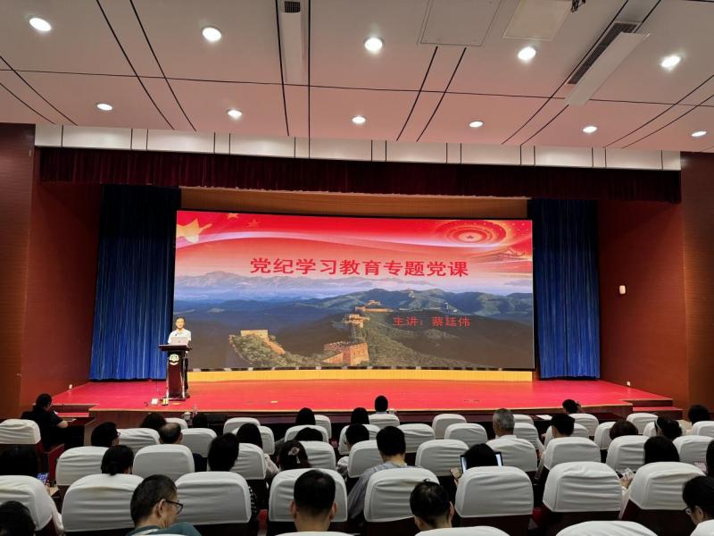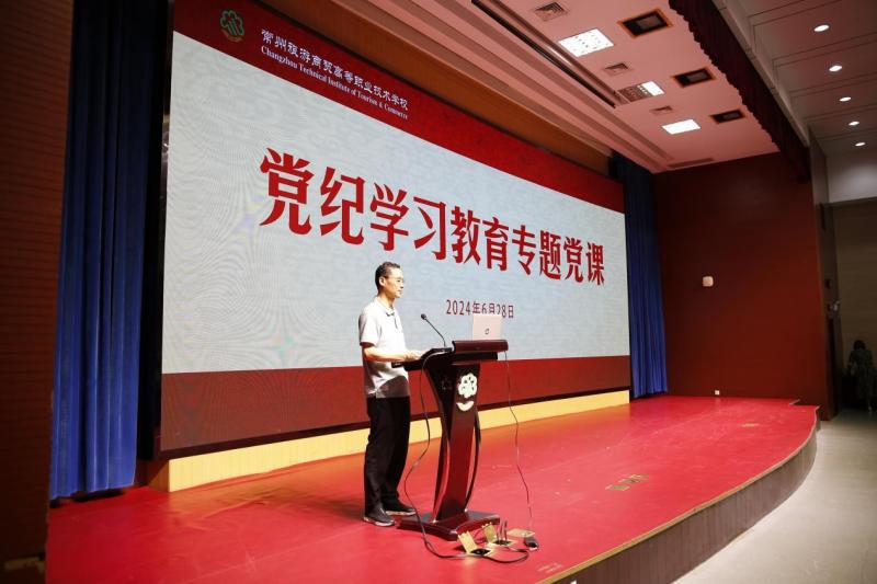 2024年6月28日,我校在季子厅召开党员大会,由校党委书记蔡廷伟给全体党员讲授党纪学习教育专题党课。会议由校党委副书记陈晓霞主持。