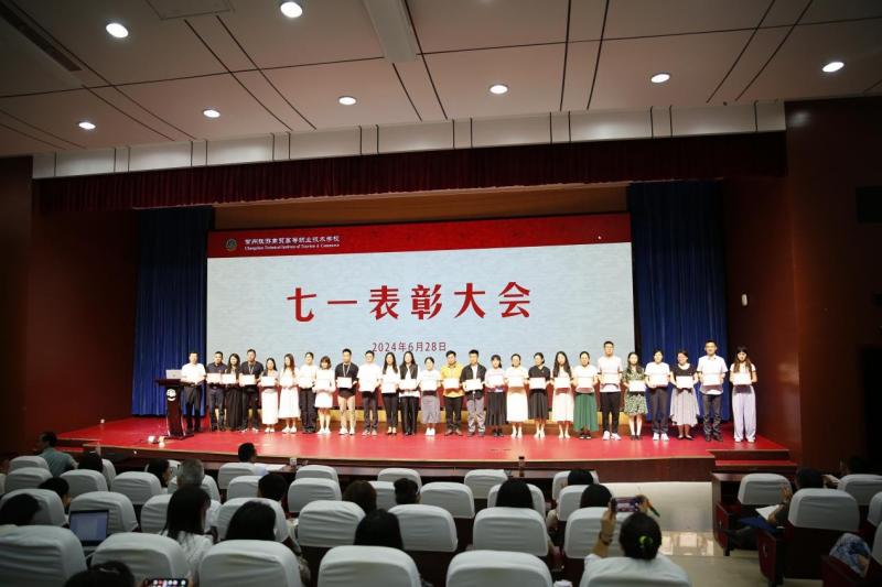 2024年6月28日,学校在季子厅举行七一表彰大会。会议由校党委副书记陈晓霞主持。校党委副书记、校长王劲宣读了《关于表彰2023-2024学年度学校“优秀党员”“优秀党务工作者”“先进党支部”的决定》。杭国金副校长为优秀党员颁奖,王劲校长为优秀党务工作者颁奖,蔡廷伟书记为先进党支部颁奖。